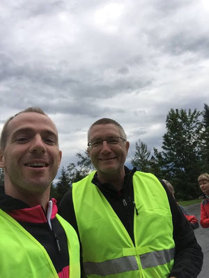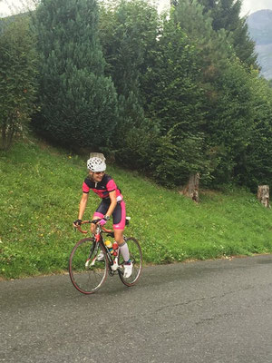 Sur la première transition surtout ne rien oublier! Un maillot, un k-way, les gants en plus de l'équipement habituel, un mot d'ordre GÉRER! Et c'est parti après 2km on attaque par la cote de Domancy (8,5% de moyenne, 16% max) wouhou les mollets sont déjà tout durs. On redescend un peu sur Sallanches ça fait du bien puis 2ème montée plus régulière elle passe bien, par contre la descente est très dangereuse avec de multiples épingles , je ne prends aucun risque, tempi la moyenne n'augmentera pas à descendre entre 20 et 30km/h mais au moins sur le vélo. A peine arrivée en bas qu'on remonte sur Cordon encore de beaux pourcentages, sur le haut je retrouve Lionel et Xavier de jaune fluo vêtus, tiens?! C'est pas fini on continue de monter sur Combloux puis Demi quartier enfin on descend par St Gervais, cette fois la route est à peu près sèche mais le plus dangereux ce sont ces voitures.. obligé parfois de passer entre la file montante et descendante arrêtées.. On passe de l'autre coté mais le plus dur arrive la montée du plateau d'Assy jusque Plaine Joux et bien entendu par des petits raccourcis plus pentus.. Sur le haut je retrouve mes deux supporters puis la descente se déroule sans incidents bien qu'un certain virage aura donné quelques frayeurs.. Je pose le vélo après plus de 4h et une moyenne de 20,5km/h, il fallait au moins ça pour plus de 3500m de dénivelé positif, mais au moins pas de chute et j'en ai laissé "sous la pédale" pour la course à pied.
