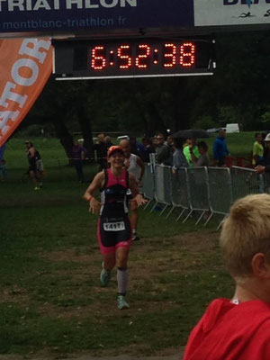 Il doit me rester 6km et là rien ne va plus, la montre n'a plus de batterie, j'ai un point de coté qui vient de nulle part, on doit être à plus de 6h30 de course pfff j'arriverais pas sous les 7h.. mais je vais le finir ce triathlon et en courant! Ce point de coté part assez vite et je passe sous la ligne d'arrivée en 6h52, 1ère séniore 1, 14ème féminine 158ème au scratch.