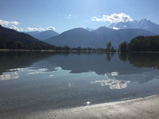 Après quelques semaines de repos je n'avais pas la prétention de faire un temps sur le triathlon half du Mont Blanc mais plutôt de me mettre un peu de charge d'entrainement pour la "2ème partie de saison" et profiter de ce petit coin de paradis.